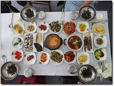 밥을 먹으로 가면 전라도식 푸짐한 한상차림이 기다리고 있고.