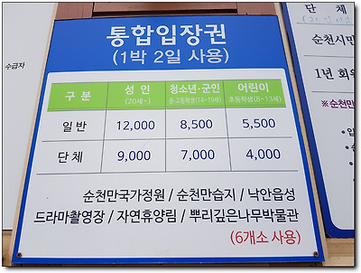 이렇게 6개소에서 모두 사용할 수 있는 통합입장권이 훨씬 경제적일 듯 하다.