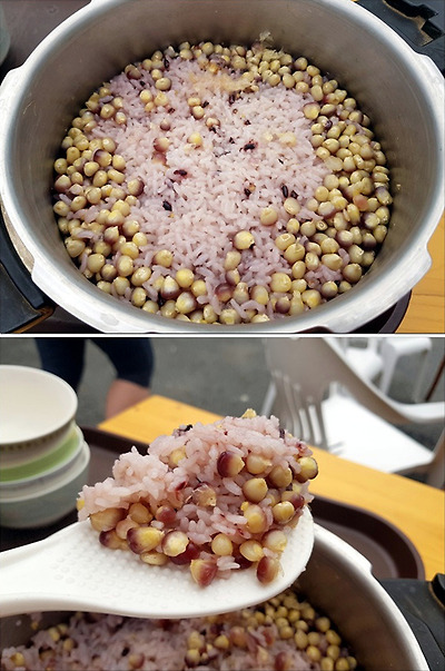 마침 옥수수가 있어 밥에 넣었다며 옥수수밥을 주셨는데,