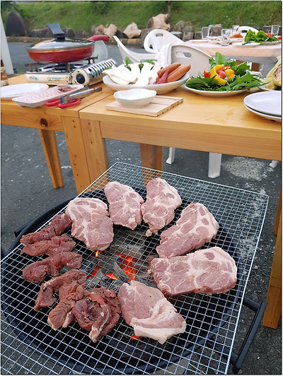 펜션 바베큐는 일인당 얼마씩 내면 펜션에서 직접 준비해주기도 한다.