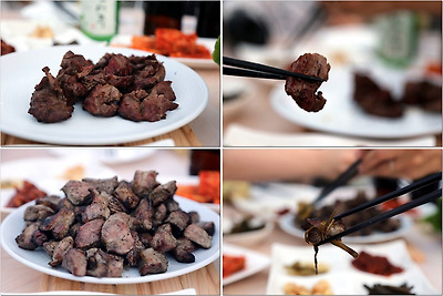 맛있게 익은 고기가 테이블에 올라오자