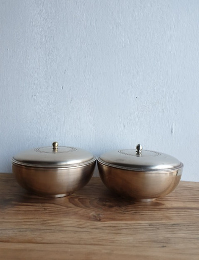 모양 이쁜 놋그릇 유기합 넉점 입니다사이즈 큰거2개 작은거2개모두 한집꺼에 제짝에 합으로튼튼하게 생긴 뚜껑과그릇이 실사용 하기에 좋을듯 싶네요~^^기계로 닦으면 광은 나겠지만건강그릇이라수작업 으로 닦았어요~ㅎㅎ이쁘게 사용해 보세요~~(사이즈)대ᆢ뚜껑뺀 높이7cm지름17cmᆢ2개중ᆢ뚜껑뺀 높이6cm지름14.5cmᆢ2개
