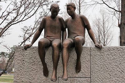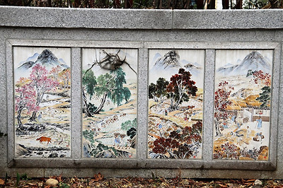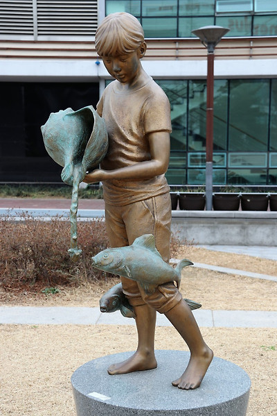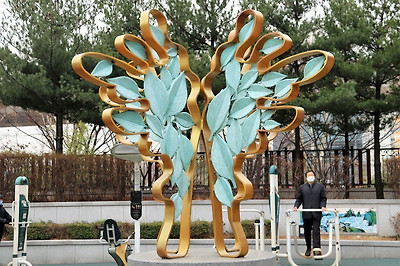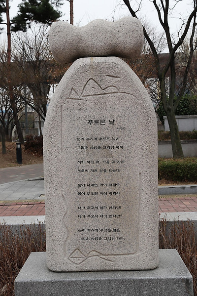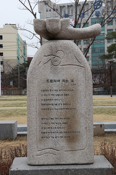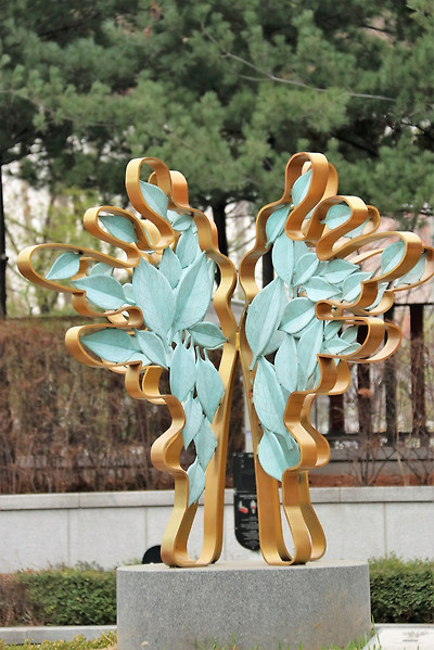 이러한 용두공원의 '대화', '비오는 날에', '바다로 부터' 등의 멋진 조형물들이 구석구석 놓여 있는 모습, 공원 주변의 만개한 '산수유꽃'과 개나리 인줄 알고 찍은 '영춘화' 모습, '흔들리며 피는 꽃' 등의 시비