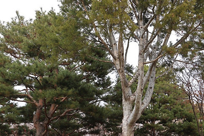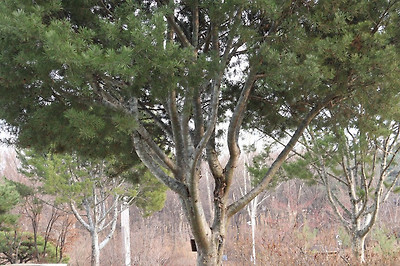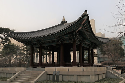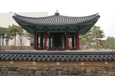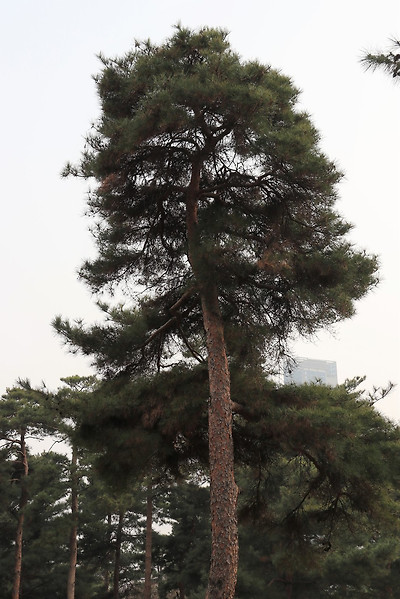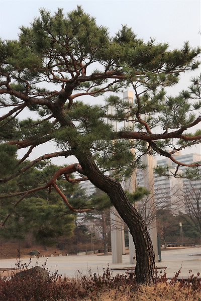 국립중앙박물관 동관쪽의 보신각종 주변 모습, 멋지게 휘어진 소나무들, 용산가족공원가는 방향의 미르
