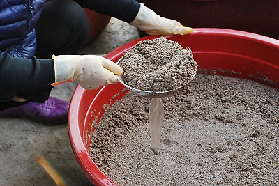바람에 날아가 옆에 떨어지는 진한 껍데기가 섞인것은