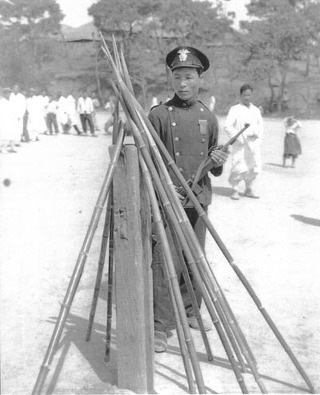 (1948년 남로당 빨갱이들로 부터 압수한 끝이 뾰족한 살상용죽창; 자료사진)