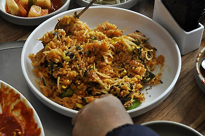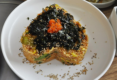 먹고난 찜 쏘스로 밥을 볶아 주는데 비쥬얼이 이색적이고 사랑 스럽다 ^^*