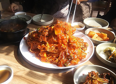 뼈찜을 열심히 먹고