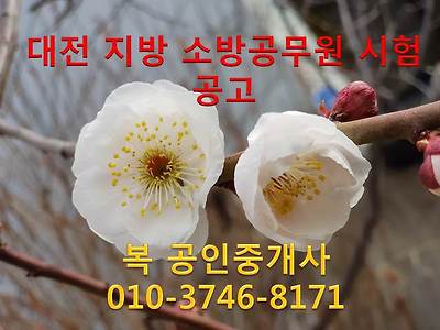 | 대전광역시 공고 제2019 - 425 호 2019년도 지방소방공무원 공개(경력)경쟁임용 필기시험 시간 및 장소 공고 2019년 4월 6일(토) 시행하는 대전광역시 지방소방공무원 공개(경력)경쟁임용 필기시험 시간 및 장소를 다음과 같이 공고합니다. 2019년 3월 18일 대전광역시장 | |||
