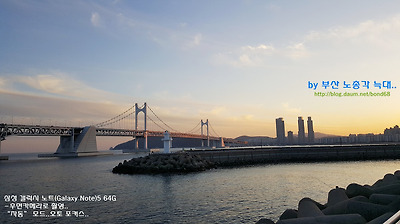 ~민락동 수변공원의 모습이~~!!아..지난번 태풍으로 큰 바위들이 많이 올라와 있습니다..~