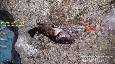 ~방파제로 올라와서 자로 길이를 재어보니 26cm가 나옵니다..야생이라서 성격이 있고 몸에 상처들도..~