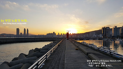 ~방파제 위에서 수변공원 내항을 보니 노을을 담은 모습이 이쁩니다..~