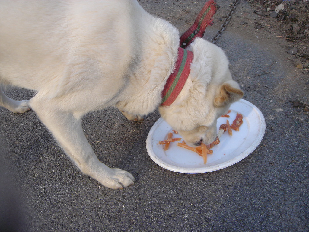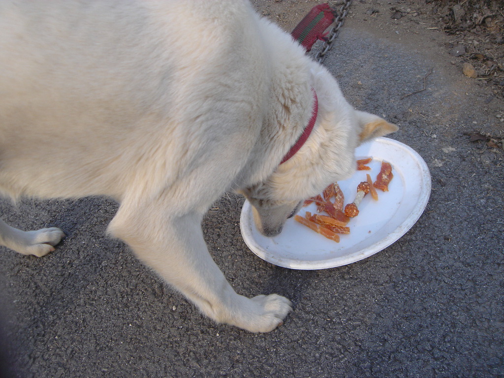 그리고 백구한테 다시오니 밥을 좀 남기네요.