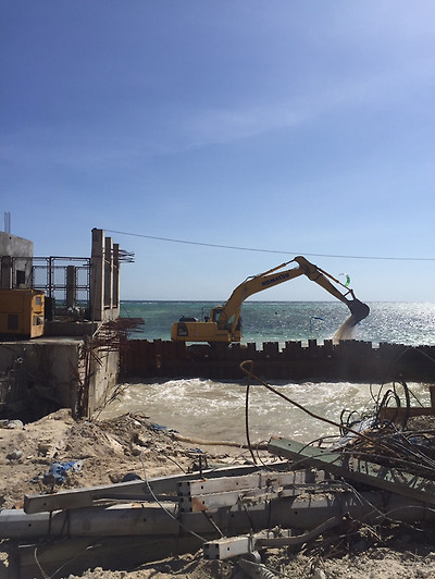 바닷가에서도 공사가 한창 입니다.
