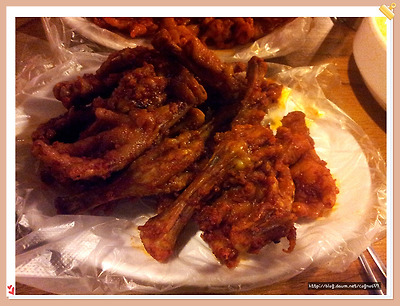 통닭발이 씹는맛도 있고 입술 주위가 따가울 정도로 맵지요
