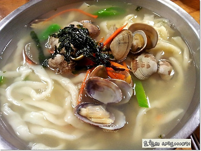 칼국수는 바지락과 야채로 우러낸 육수가 기본이며