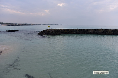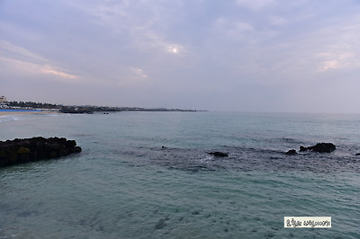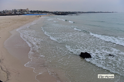 북쪽을 향한 해변이어서 파도도 높지 않은 곳이다 제주시에서는 10km정도