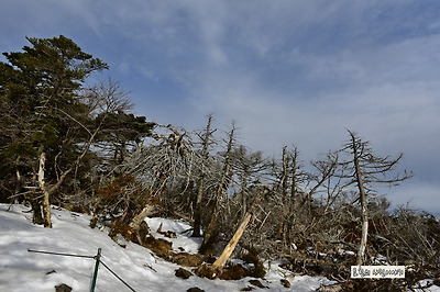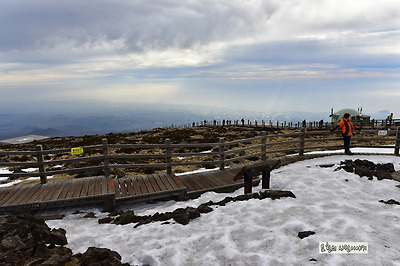 큰눈이 내리지 않아서 중턱까지는 눈이 녹았고 정상부근에만 조금 남아 있다