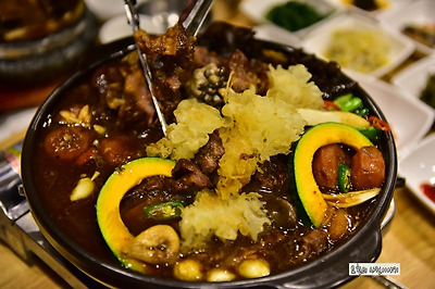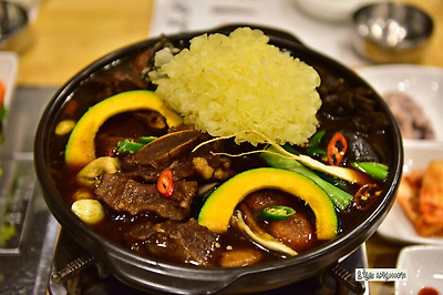 한방갈비찜으로 16가지 한약재와 10여가지의 천연조미료를 사용한