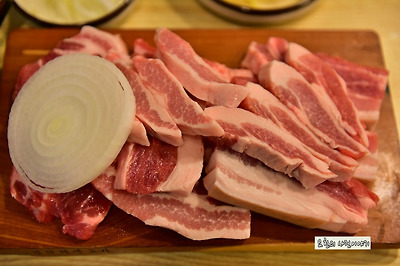 상차림 된다 노릇하게 구운 돼지고기와 함께하는 소주가 달다