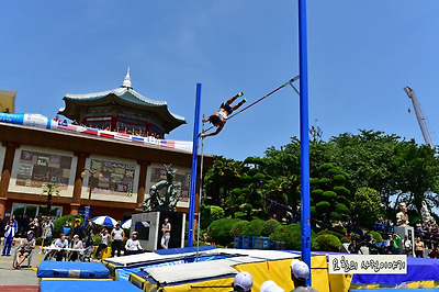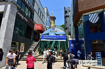 오르내린다 현재 용두산공원의 시설물은 부산타워와 4,19기념탑과
