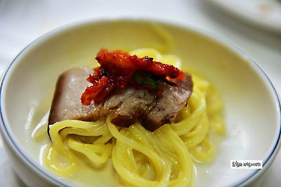 성업 중이다 콩국수와 더불어 삶은 돼지고기