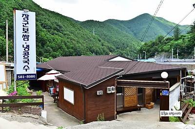 들어 서야 장군보쌈 냉콩국수라는 간판이