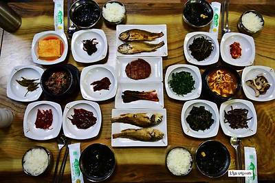 식과 김치등과 같은 기본적인 곁반찬이 차려