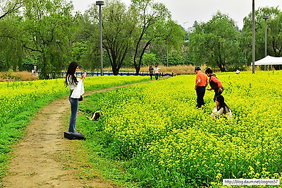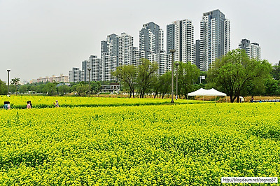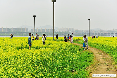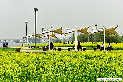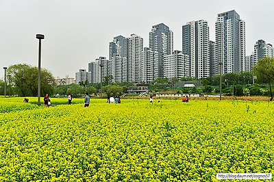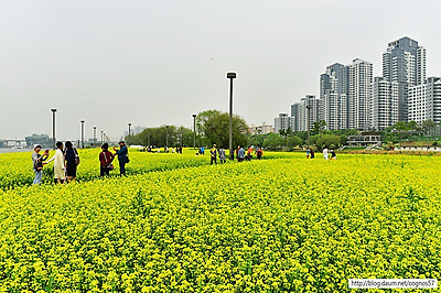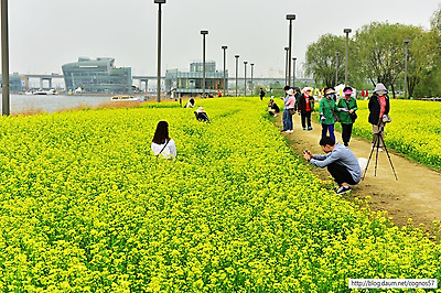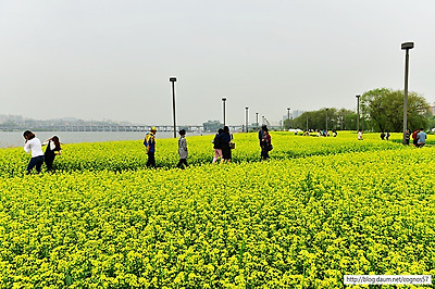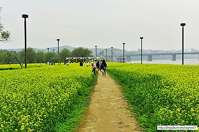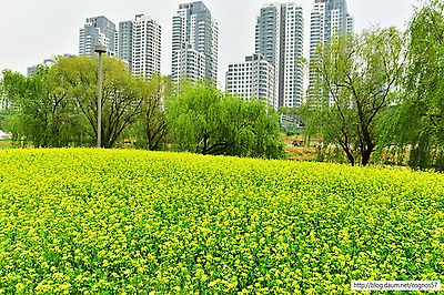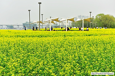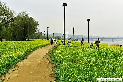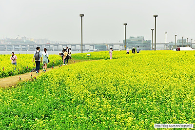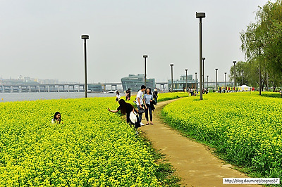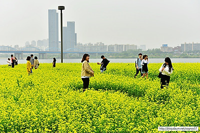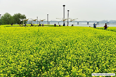 면 노란 유채꽃밭으로 변화하는 반포한강공