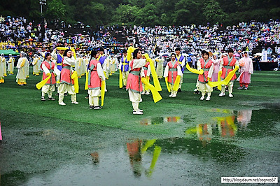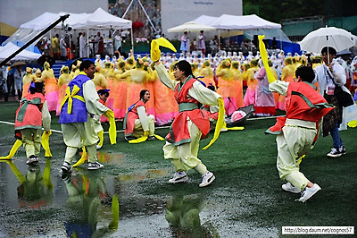 단의 화려한 춤사위와 흥겨운 노래가 흥을