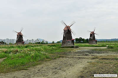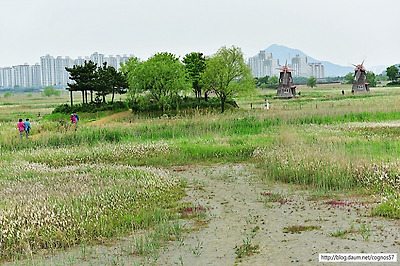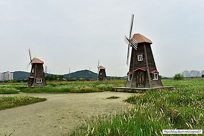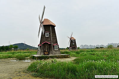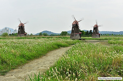 물을 관찰할수 있는 광활한 갈대밭과 풍차가