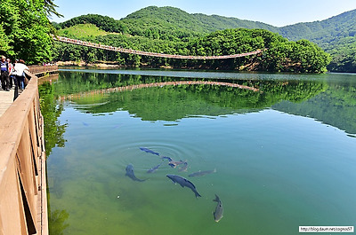 식 관광지를 지향하는 마장호수출렁다리이다