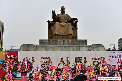 광화문광장에 있는 세종대왕 동상 앞에서
