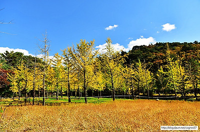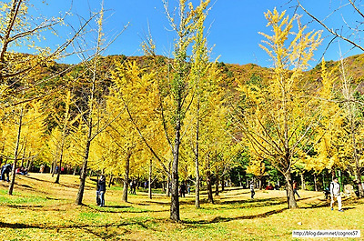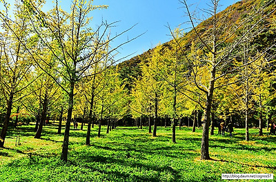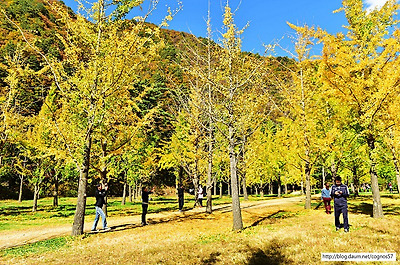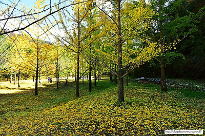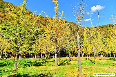 은행나무 노란단풍의 아름다운 가을풍경 홍천은행나무숲