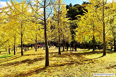 노란 은행나무 단풍 숲에 가을을 만끽할수