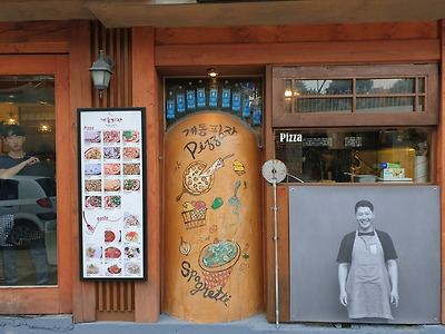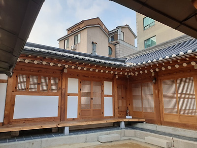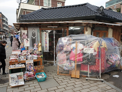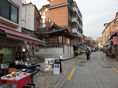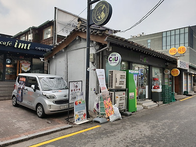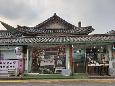 며 골목길에 들어서면 한옥 몇채들이 상점