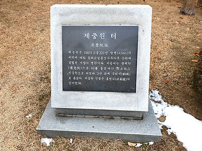 옛 제중원 터의 위쪽에서 자라는 백송이