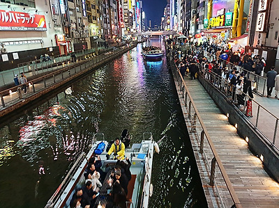 오사카자유여행/오사카난바가볼만한곳/도톤보리 강/톤보리 리버크루즈 유람선/ 신사이바시상점가/도톤보리 유흥가 야경