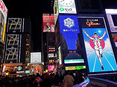 도톤보리 트레이드마크 에비스바시의 글리코제과점 옥외 간판