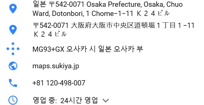 24시간 규동 체인점 스키야 도톤보리 잇쵸메점