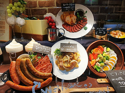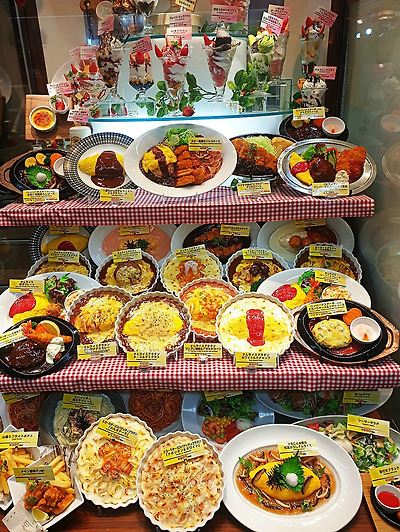 디저트를 팔고 있습니다 매장 앞에 음식모형