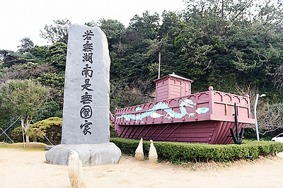 길이의 방파제로 연결하여 육지화된 섬