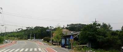 주택으로 가기전 마을앞 지방도로변으로 시내와 터미널로 가는 버스정류장이