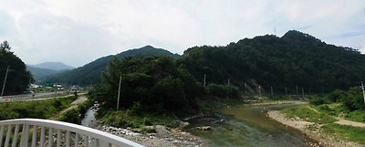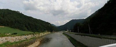 ktx 평창진부역사를 지나서 우리토지로 가기전에 이렇게 레프팅의 중심 아름다운 오대천이 흐릅니다