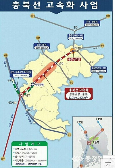 충북선의 고속화철도도 이곳으로 연결예정