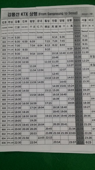 강릉>평창에서 ~~ 서울 청량리까지 ktx열차시간표