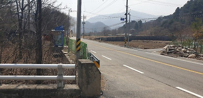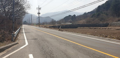 지방도로에서 올라가는 방향에서의 본 토지와 잔대로 유명산과 지