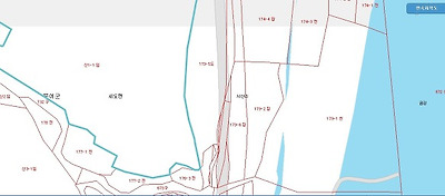 (좌측하늘색 선이 본 토지로 전면 도로지번및 2차선도로변에 60여미터이상 낣게 접해 있으며 바로앞 우측정면으로 금강입니다)