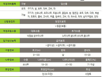 산림경영을 하실분을 위해서 산림청제공의 본 임야에 대한 수종,그리고 재배에