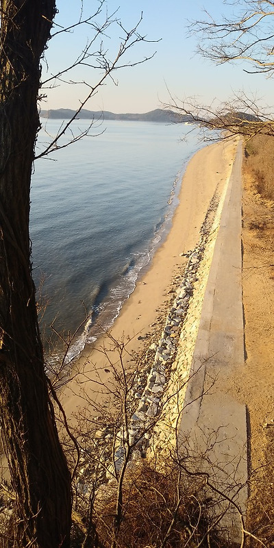 대빈창 해변의 외지인을 볼 수 없었던 시절이 그리 멀지 않았습니다. 가난했지만 평등했고 마을공동체의 심지 깊은 배려로 오히려 풍족했던 시절이었습니다. 현재 서해의 작은 외딴섬 사람들의 삶속에 인류의 미래 모습이 보입니다. 화석연료를 태워 풍요를 구가하는 현대문명은 머지않아 조종을 울릴 것입니다. 대체에너지를 부르짖지만 '양치기 소년'에 불과합니다. 개발 성장이 아닌 생태 순환이 가능한 문명만이 인류의 앞길을 밝혀 줄 것 입니다. 철없는 도시의 소비문화보다, 성숙한 시골의 살림문화가 인류의 희망입니다. 머지않아 제방을 쌓아 일군 다랑구지 논들에 모래가 쌓여 다시 사구가 형성될 것입니다. 섬의 농부들은 고희를 넘겼습니다. 10년 후 외딴섬의 농사를 누가 이을 수 있을까요. 어머니를 모시고 섬에 삶터를 꾸린 지 이제 강산이 변할 만큼 세월이 흘렀습니다. 가난하게 살다 섬에 뼈를 묻어야 겠습니다. 위 이미지는 대빈창 바위절벽 나무테크 계단 쉴참의 전망대에서 잡은 제방입니다. 멀리 삼보12호가 볼음도에 기항하고 뱃머리를 주문도와 아차도 사이의 좁은 해협으로 돌렸습니다. 시간은 오후 4시 10분경입니다. 제방에 찰랑거리는 만조의 물결로 보아 물때는 사리에 가까워졌습니다. 아침 저녁 하루 두 번 저의 발길이 제방을 따라 걷는 시간이 얼마나 남았을까요.